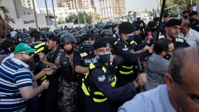 Lxs maestrxs que marchaban por las calles se encontraron con toda la fuerza policial de Jordania. Grupos de maestrxs reunidos en Ammán fueron alcanzadxs con gases lacrimógenos y macanas, mientras que lxs rezagadxs fueron arrestadxs.