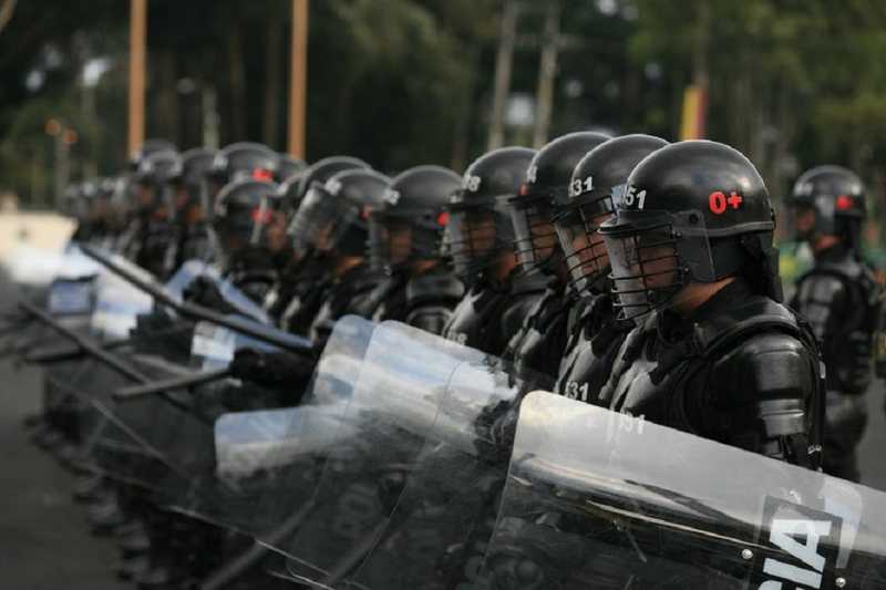 Colombia’s special riot police, ESMAD, line up in Bogotá. (Creative Commons)
