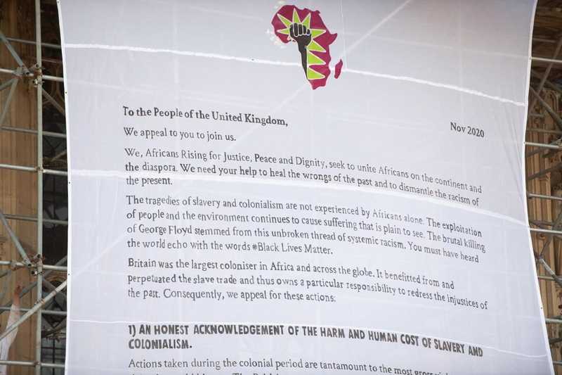 Africans Rising, a Pan-African movement of people working for Justice, Peace and Dignity, created the letter for their #ReRightHistory campaign, which calls for honest acknowledgment of the harm and human cost of slavery and colonialism, the legacies of which continue to have negative influence on the economic and political trajectory of countries across Africa, whilst undermining its ecological sovereignty. The text also demanded reparations to the victims of slavery and colonialism and the establishment of truth and healing commissions to enable full acknowledgment of the legacies of slavery, colonialism and ongoing systemic racism.
