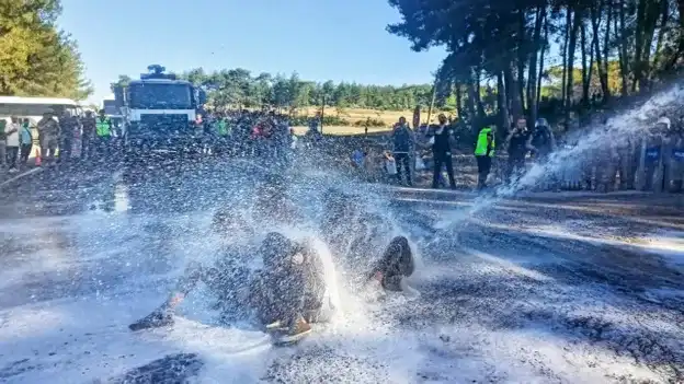 Gendarmerie and police surrounded the villagers' tents at dawn before the cutting of trees started. No one was allowed to enter or leave the area, and those who came from other provinces to support protestors were attacked with police water cannon vehicles (TOMA).