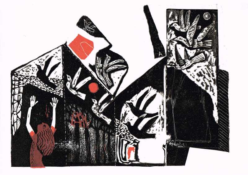 Artificio de pájaros, 1988 is a linocut by Gladys Afamado (24 May 1925 – 29 December 2024) a celebrated Uruguayan artist known for her poetry and contributions to the Montevideo Engraving Club. Her contributions to the club included the 1966 artwork Campaña de solidaridad con los presos políticos en Portugal.