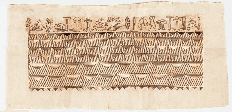White turned to the practice of Tapa in the 1980s when her family was based on the remote Pacific atoll of Kiribati, the first country threatened to be submerged by sea level rise. Tapa involves a collective laborious transformation of bark into cloth, upon which natural dyes are applied. The geometric forms in the work, which is almost three meters wide, represent the sea. In 2013, President Tong spoke of climate-change-induced sea level rise as "inevitable".
