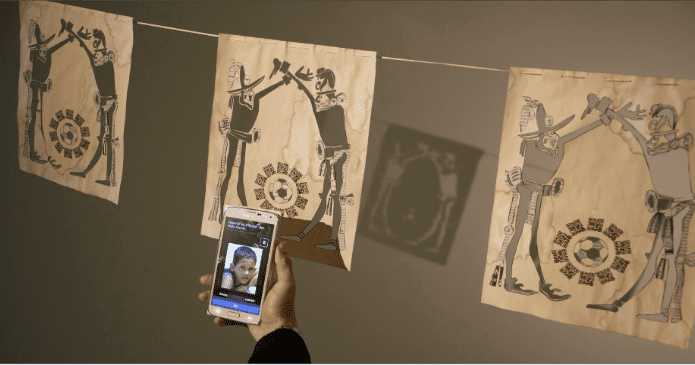 A instalação interativa retratada justapõe códigos QR com iconografia mitológica maia e bolas de futebol, uma referência à "Guerra do Futebol" de 1969 com El Salvador. Os códigos revelam vítimas da violência em San Pedro Sula—na época a capital mundial do assassinato—ainda se recuperando do furacão Mitch, que dizimou a produção de banana.